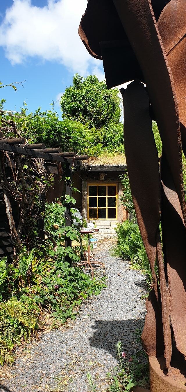 In deze tuin ligt het 'boomhuis' verscholen. Zoals de naam verraadt is dit organische gebouw gebouwd rondom een boom. dit leverde een uniek gebouw op dat een prachtige achtergrond bleek voor de wonderlijke verzameling objecten.